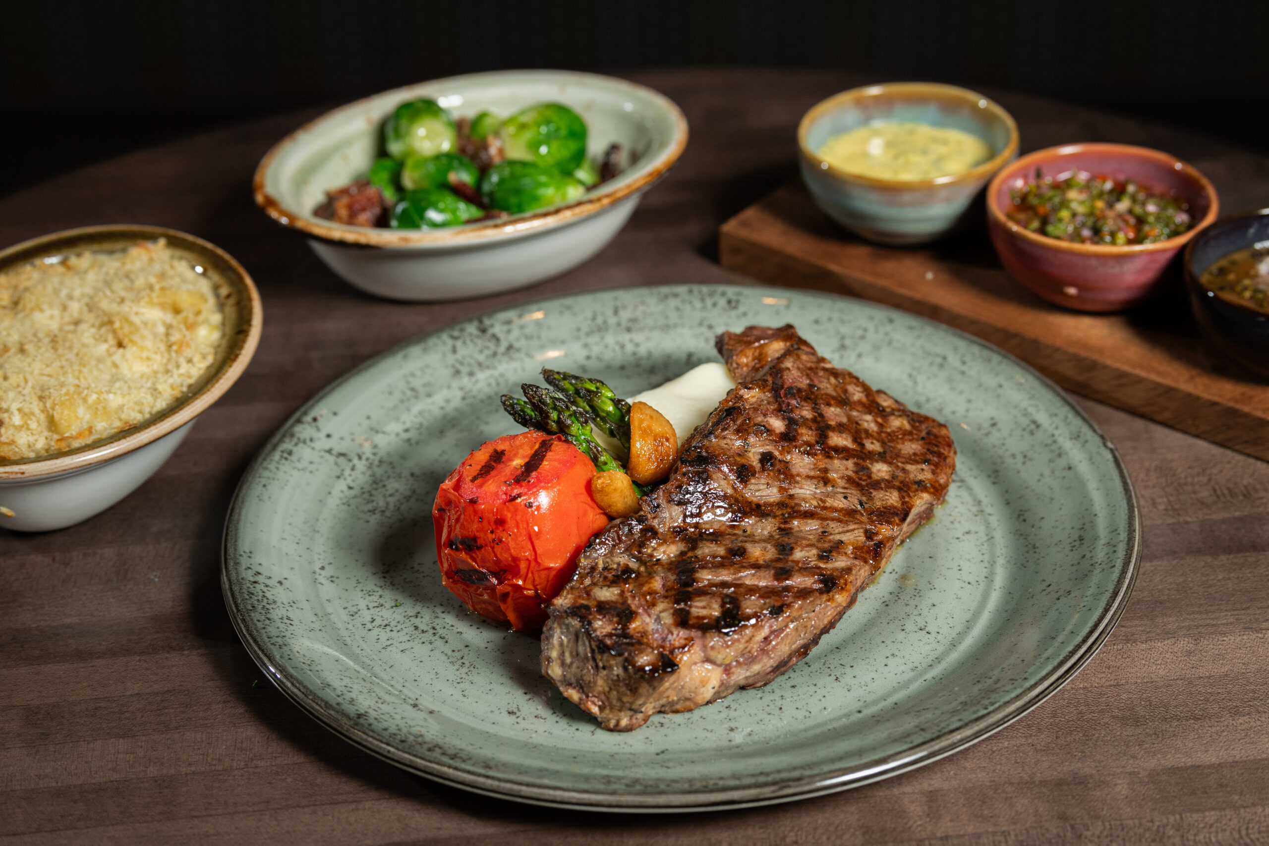 6oz elk strip steak, wóžapi, rémoulade potatoes, carrots